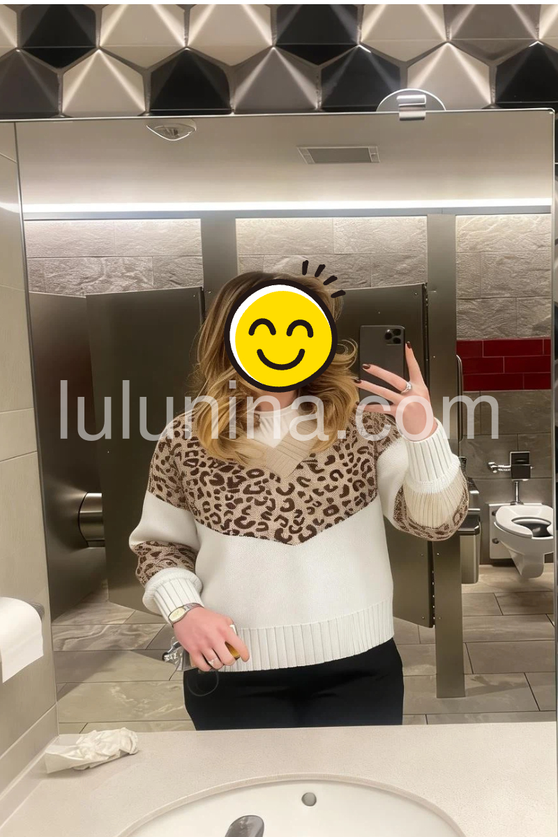 You can never have too many cozy sweaters. And when it’s this cute? You have to have it! Our newest pullover is colorblocked with a pop of leopard knit and styled with a crossover V-neckline and wide ribbed cuffs. It looks great with slim joggers and platform sneakers.