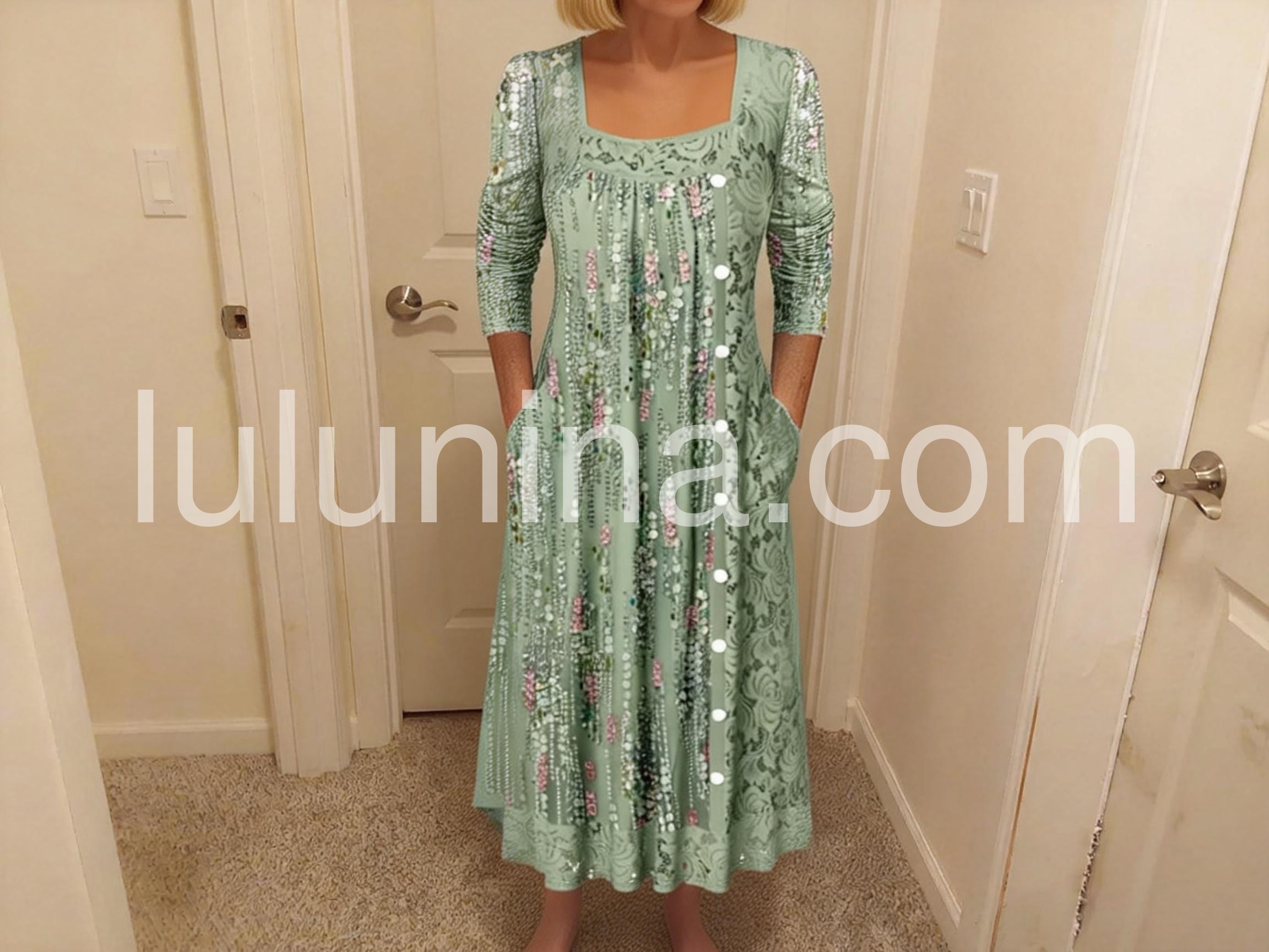 Style# 1372212Imagine effortless elegance that turns heads at every glance. This fresh green midi dress captures modern sophistication with its architectural square neckline that frames the collarbone beautifully, paired with graceful long sleeves for refined polish. The A-line silhouette flows with understated grace, while the luxurious rayon-elastane blend moves like silk against your skin—stretchy enough for all-day comfort, yet structured enough to maintain its impeccable shape. Practical side pockets add a touch of everyday luxury, while the midi length strikes the perfect balance between timeless and contemporary. Whether you're navigating the office, attending weekend brunches, or stepping into evening plans, this dress adapts seamlessly to your lifestyle. Machine washable for effortless care. Discover the dress that makes you feel as good as you look.