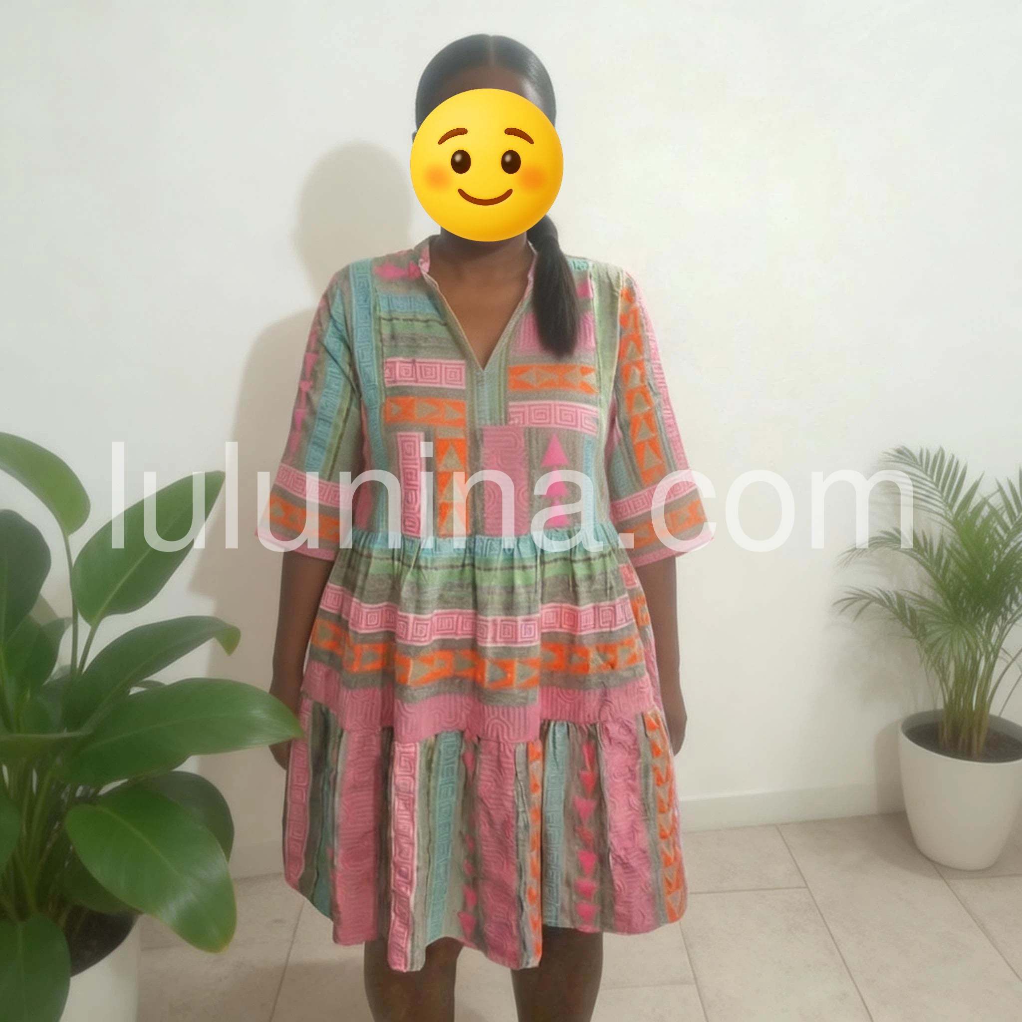 This Fresh Print 3/4 Sleeve Mini Dress is perfect for any season. It is crafted from lightweight fabric, perfect for easy layering or wearing on its own. The dress features a 3/4 length sleeve, mini length, and a colorful fresh print. The perfect addition to any wardrobe.