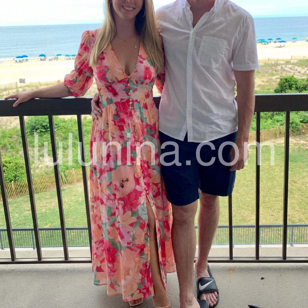 Sweet Pink V-Neck Maxi Dress