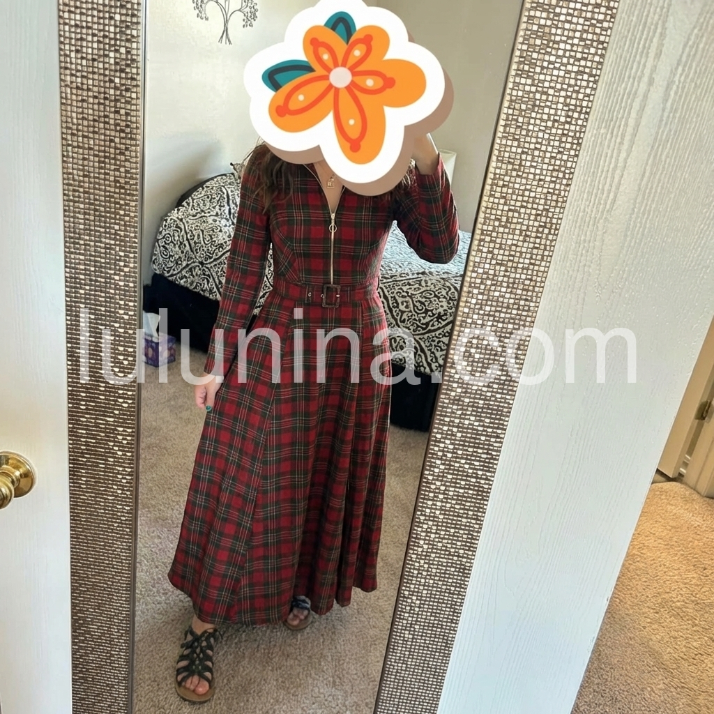I bought this dress for a special occasion, and it exceeded my expectations. The plaid pattern is bold and stylish, and the long sleeves add a sophisticated touch. The seams and fit look carefully designed, especially around the waist where the belt sits nicely. Even after hours of wear, it feels comfortable and breathable. It instantly made me feel confident and chic.