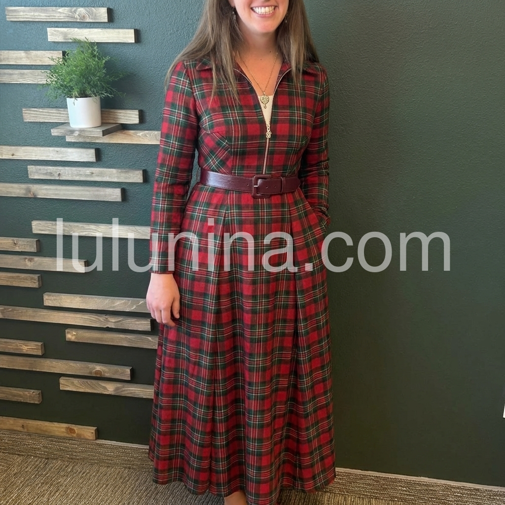 Elevate your wardrobe with this striking red plaid maxi dress, designed for those who appreciate timeless style with contemporary flair. The full-length silhouette offers sophisticated coverage, while the zip front closure provides effortless dressing and versatile styling options. Long sleeves deliver warmth and elegance, making this piece ideal for layering or wearing solo across seasons. The classic plaid pattern adds visual interest and pairs seamlessly with boots, sneakers, or heels depending on the occasion. Perfect for casual outings, professional settings, or weekend gatherings, this dress combines comfort with refined aesthetics for a polished everyday look.