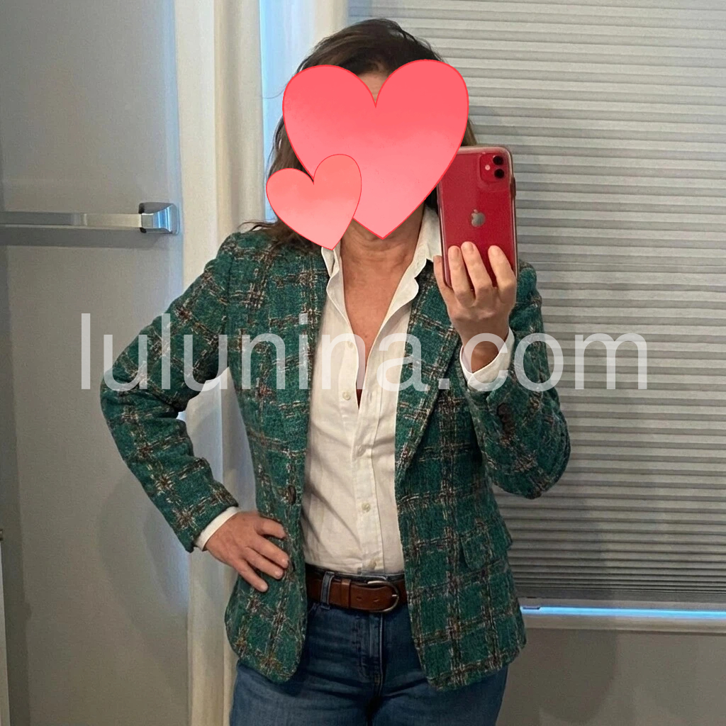 I love this blazer! The green plaid pattern looks really rich and stylish, and the tweed like fabric feels warm and well-made. The fit is flattering through the shoulders and the button front lays nicely. It’s perfect for fall or winter—great for dressing up jeans or wearing over a nicer top. It matches the photos really well and looks like a quality piece.