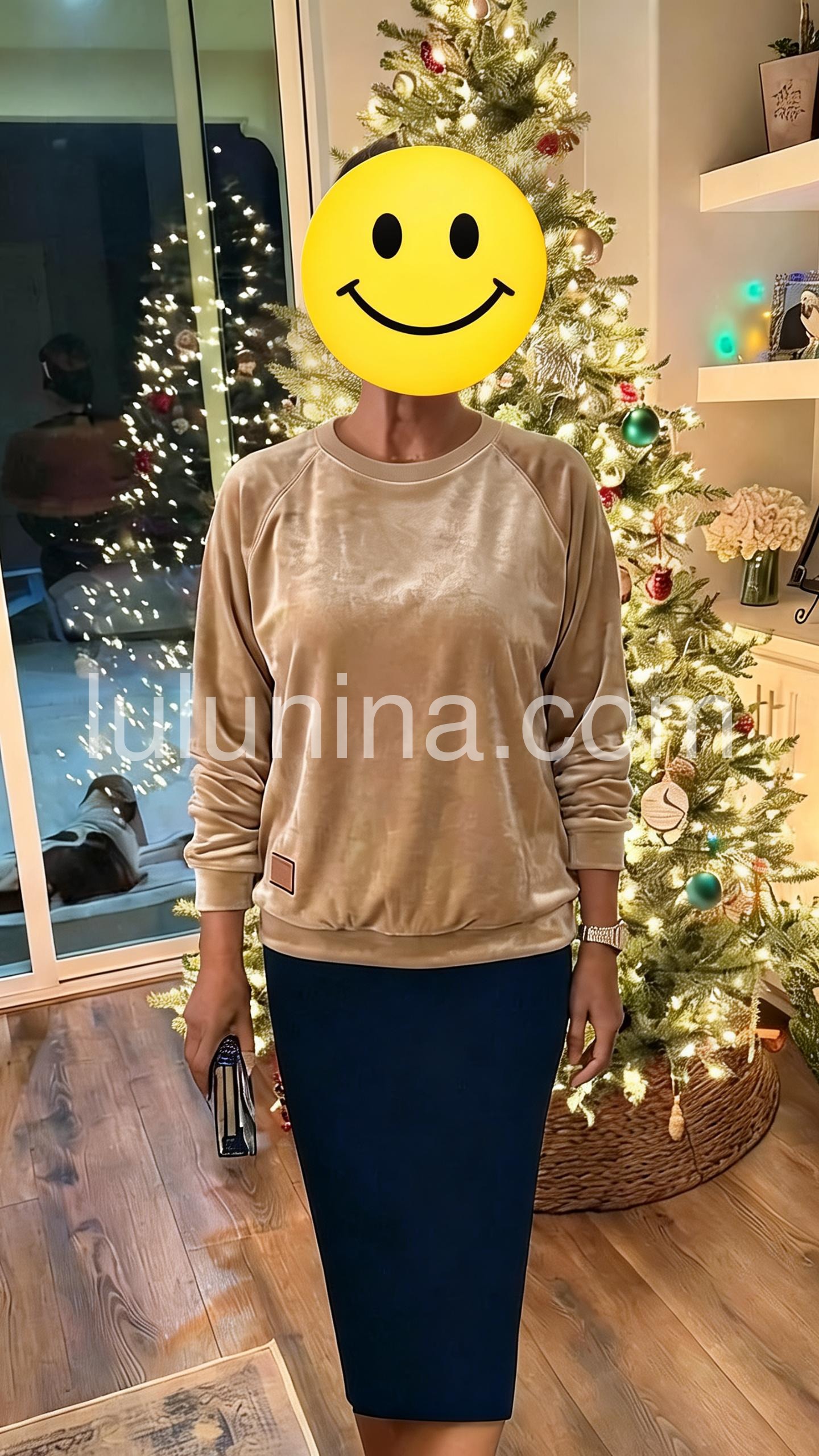 I absolutely love this sweatshirt. The fabric looks really nice and feels soft, and the color is such a flattering warm neutral. It fits comfortably and has a relaxed, easy style, so it’s great for lounging or casual outings. The length is also just right—not too short. Overall, it looks exactly like the photo and feels like a quality piece.
