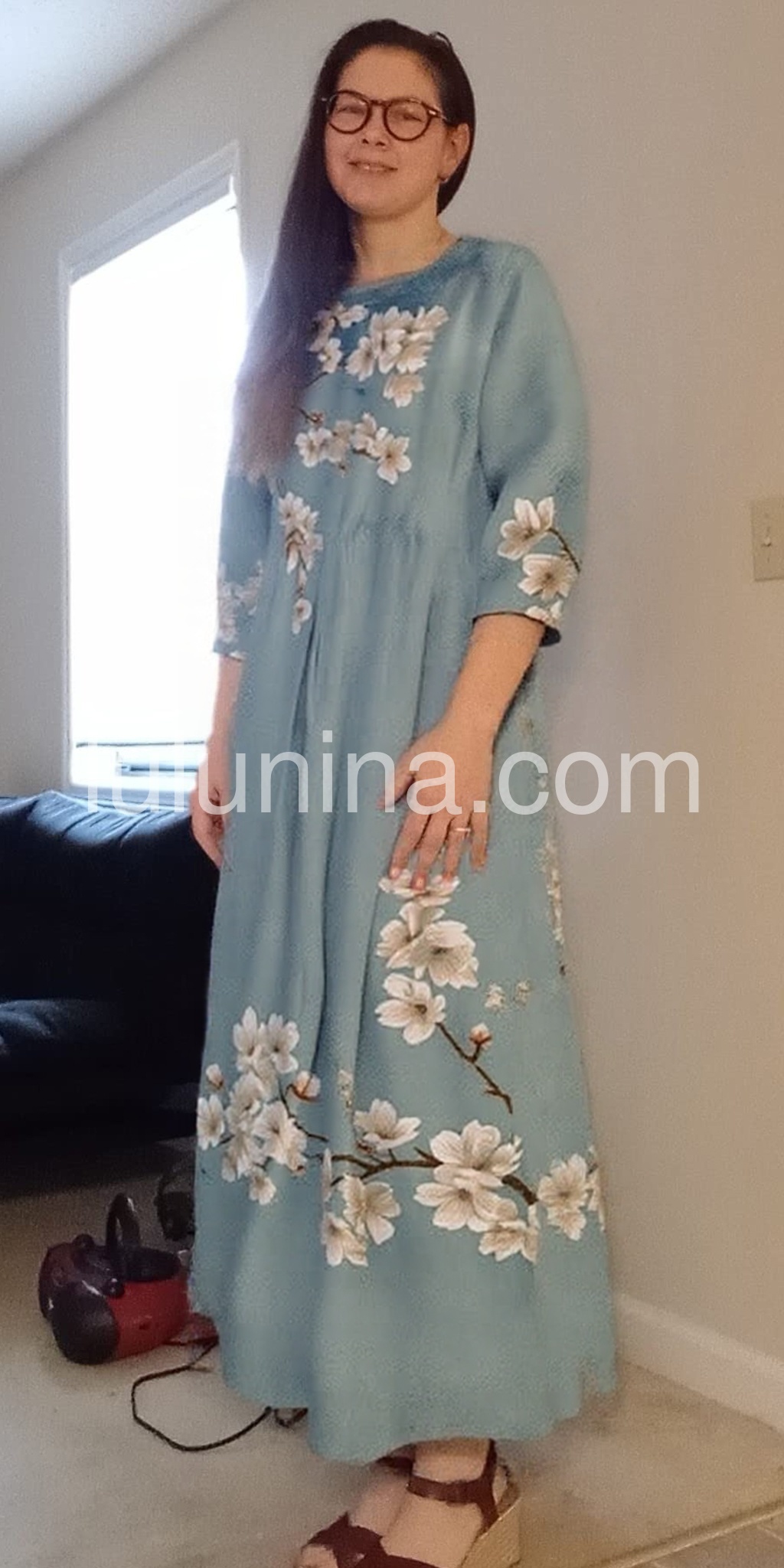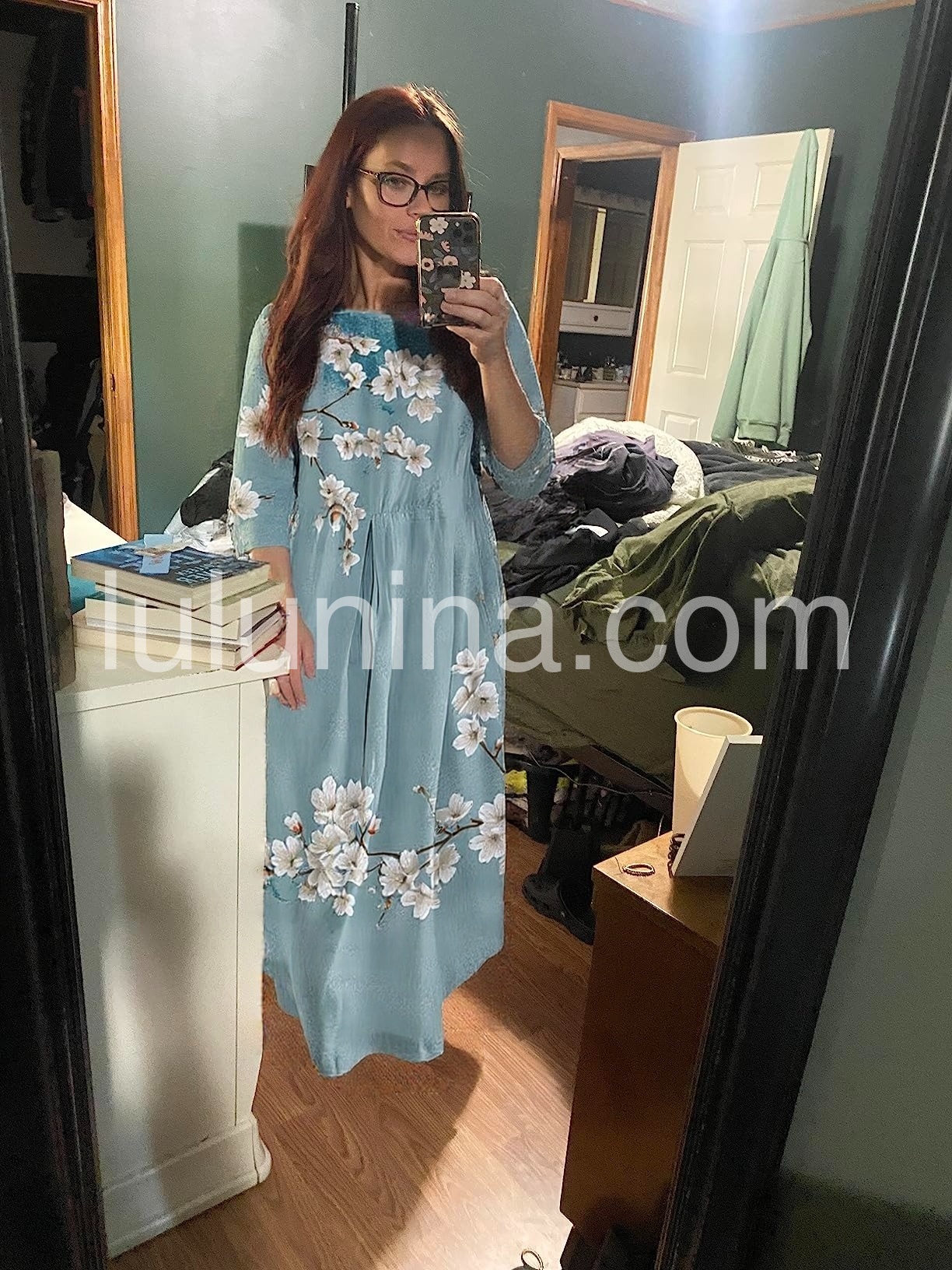 This light blue 3/4 sleeve maxi dress is a versatile and stylish addition to any wardrobe. With its lightweight fabric and flattering fit, it's perfect for both casual and formal occasions. The 3/4 sleeves provide coverage while the maxi length adds elegance. A must-have for any fashion forward individual.