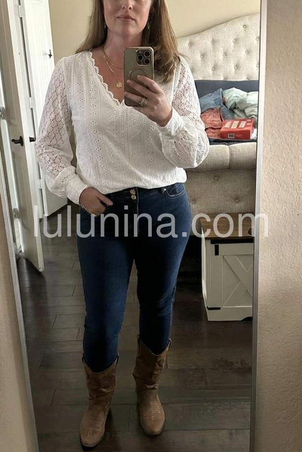 Experience comfort and style with our White Plain V-Neck Long Sleeve Top. Made with soft fabric, this top features a flattering V-neck design and long sleeves for a chic look. Perfect for any casual or dressy occasion, it's a versatile addition to your wardrobe.