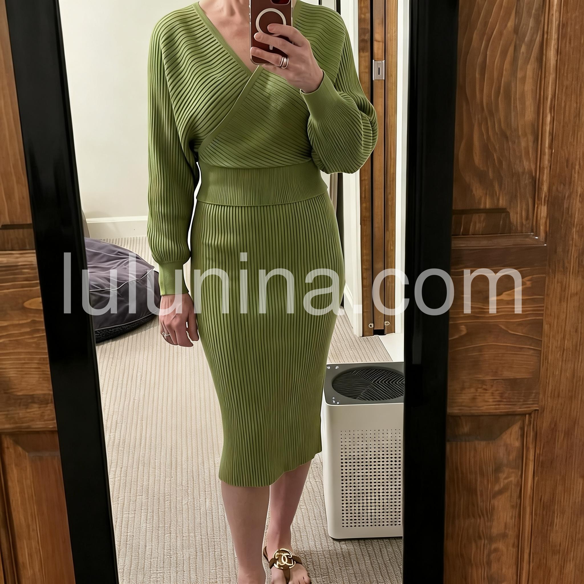 Green Long Sleeve Plain Midi Sweater Dress