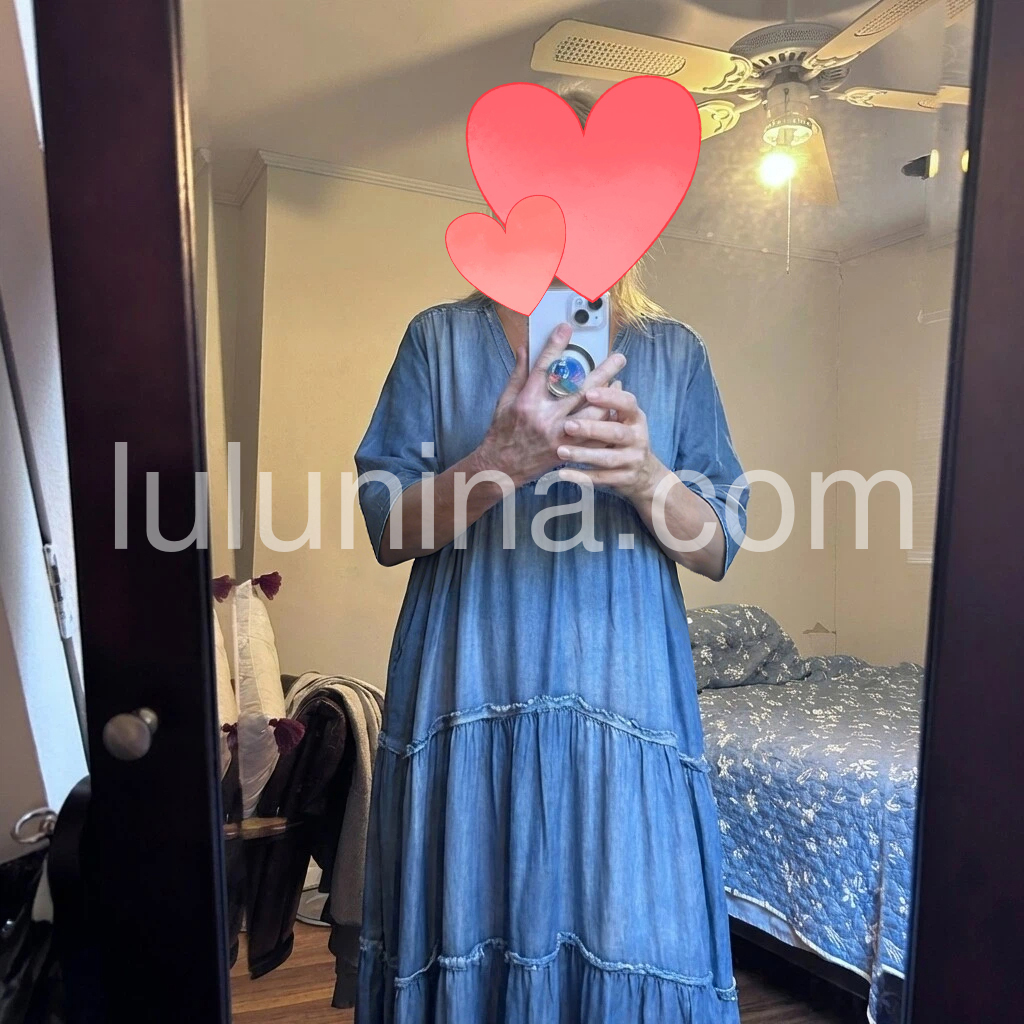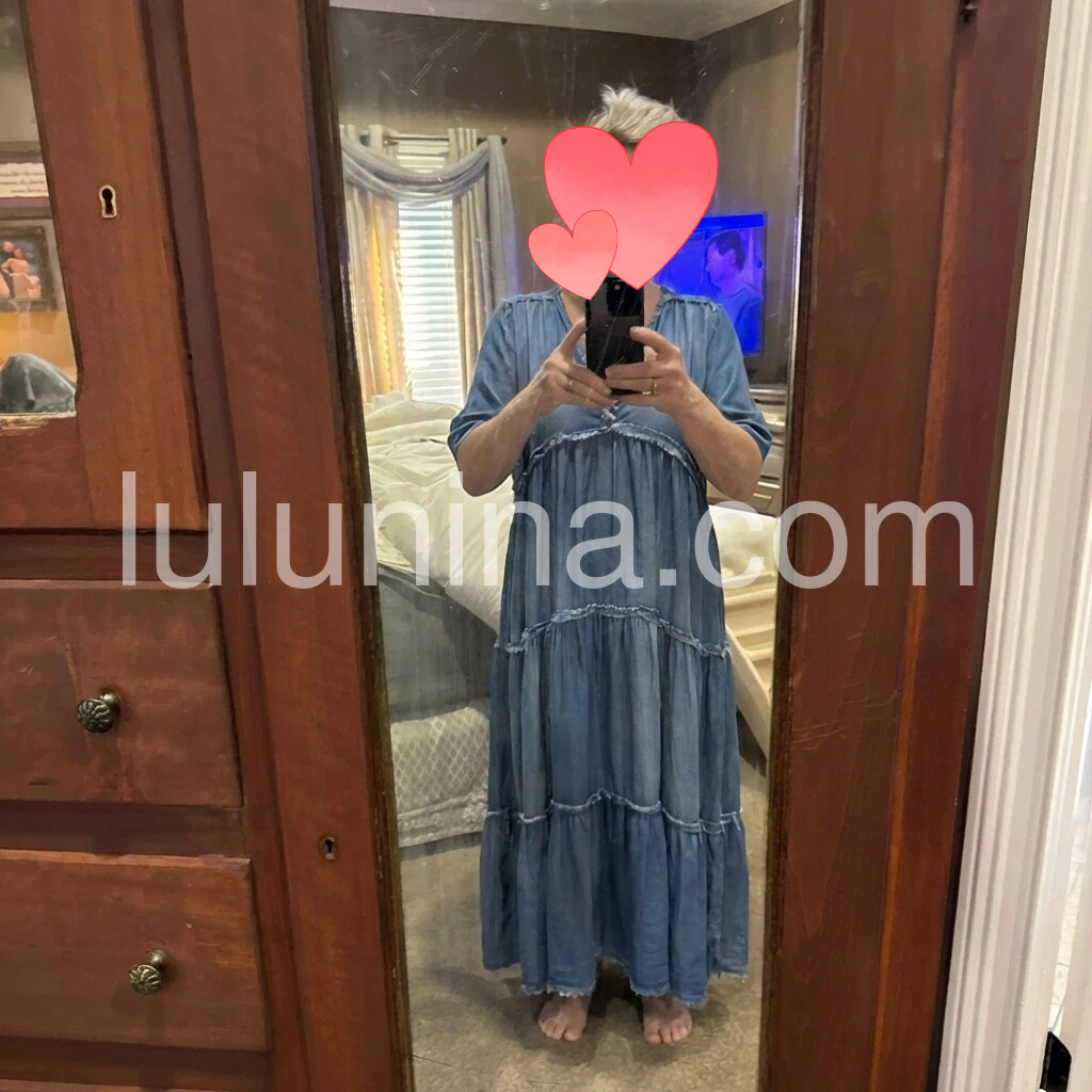 Blue Denim Plain 3/4 Sleeve Maxi Dress
